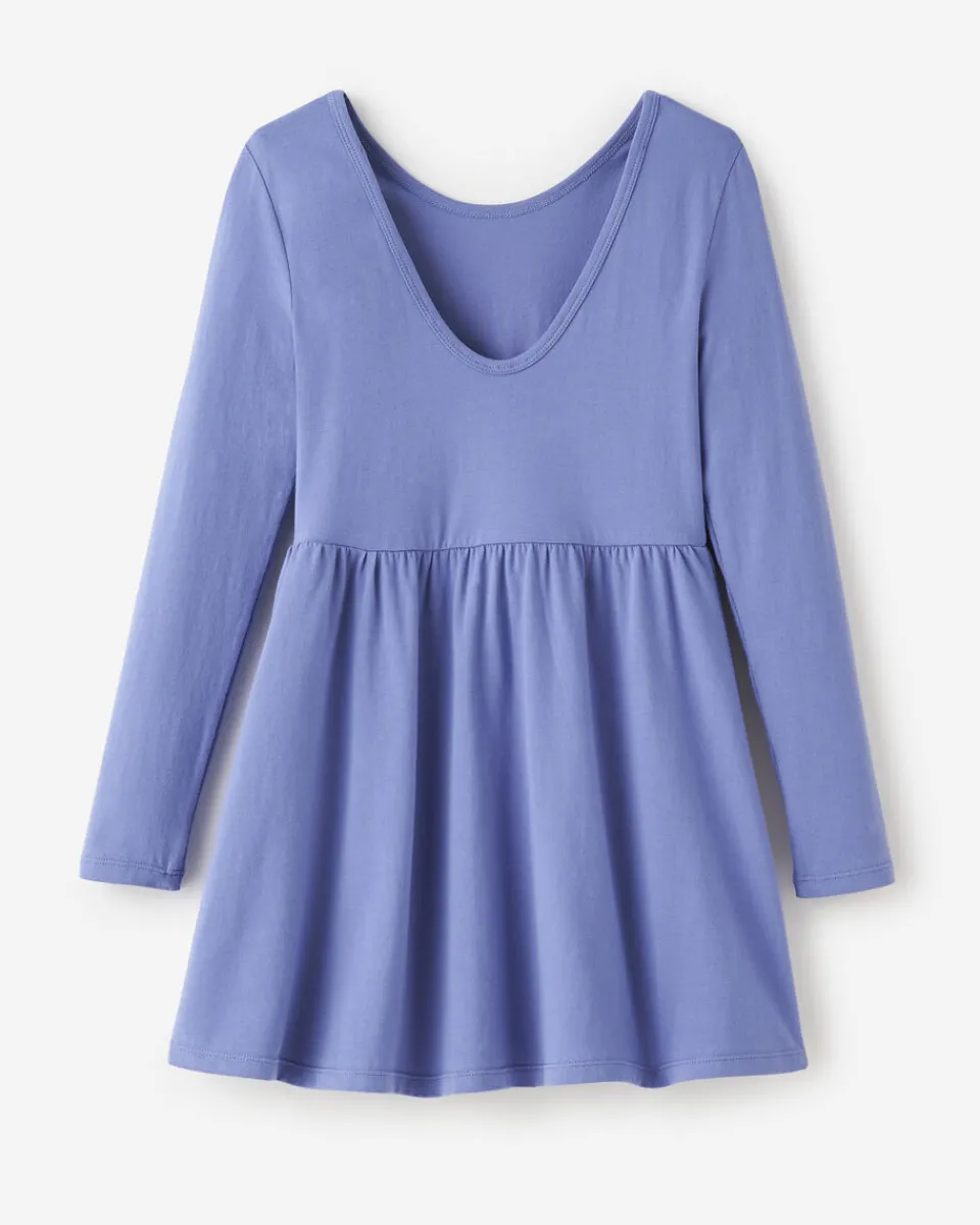 - Semi-fitted with flowy skirt