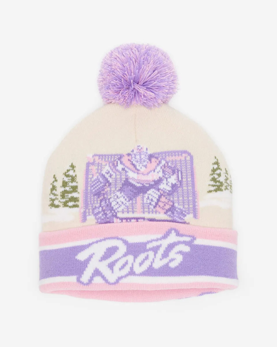 Embrace the cold in style with our Hockey Toque, featuring an original Roots intarsia landscape graphic and playful pom pom.