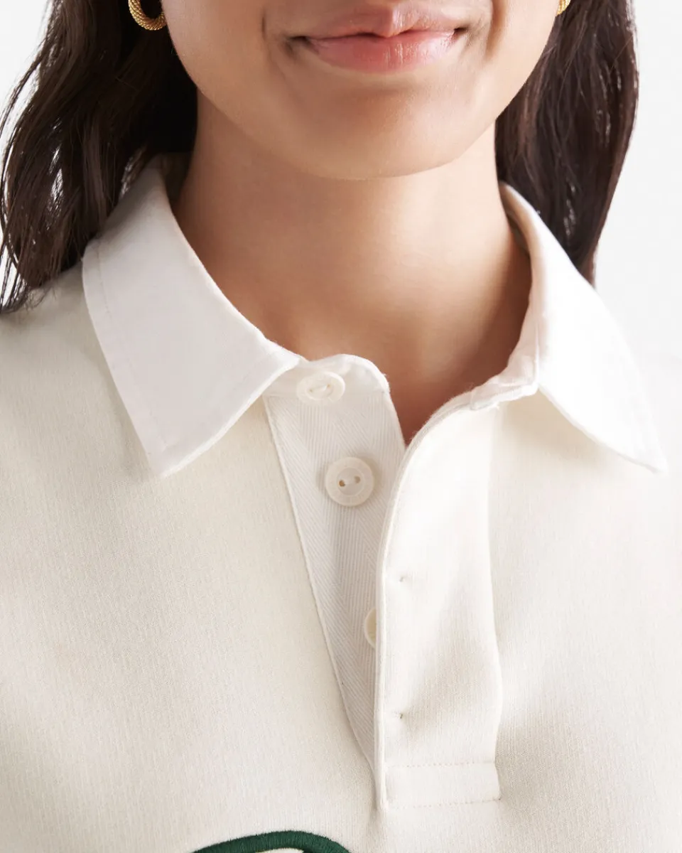 - Cotton twill rugby collar with rubber button