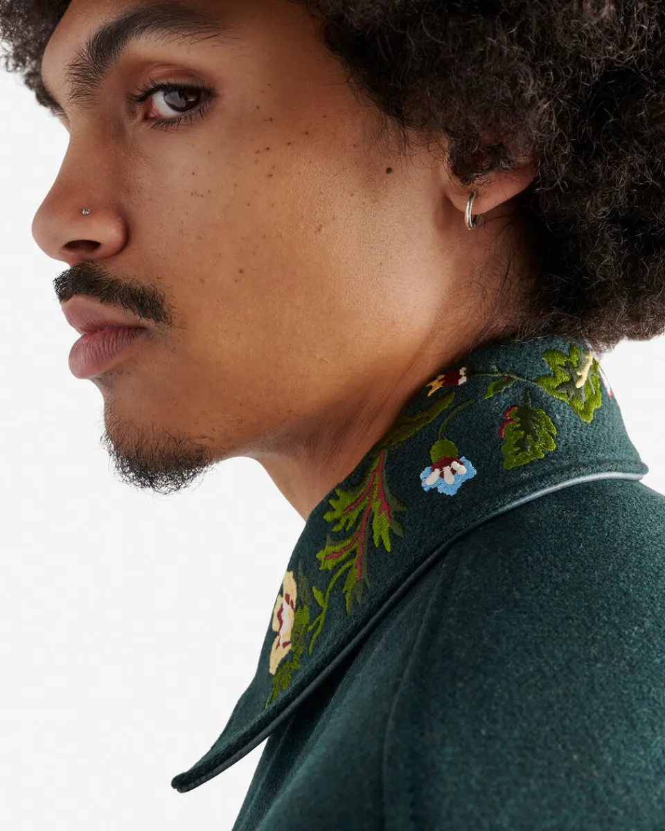 - Leather sleeves, undercollar and pocket trim
